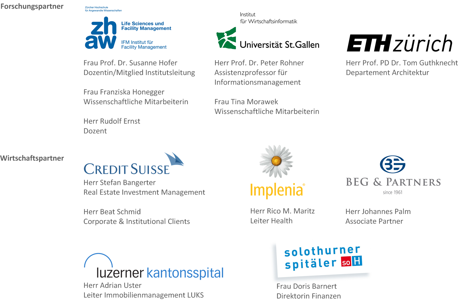 Das Projektresultat wurde ermöglicht durch die interdisziplinäre Zusammenarbeit von repräsentativen Wirtschafts- und Forschungspartnern: